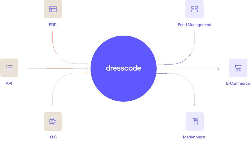 Dresscode retailers often deal with complex variation products (size, color, brand attributes).